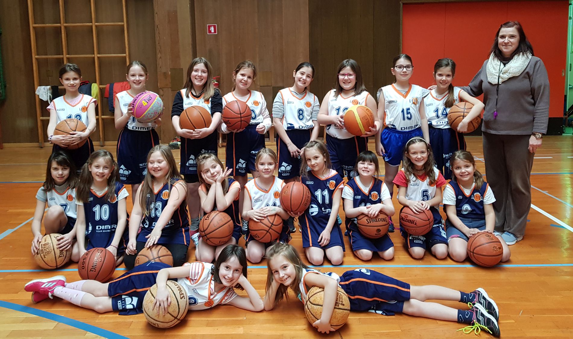 Stojijo od leve proti desni: Kiara Rivo, Iza Jurič, Loti Erjavec, Patricia Salkič, Zarja Žagar, Dajra Hodžić, Lara Čepon, Žana Turkovič, Živa Jovanovič Molek, Dragica Žontar (trenerka)